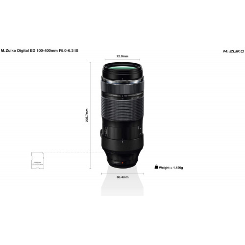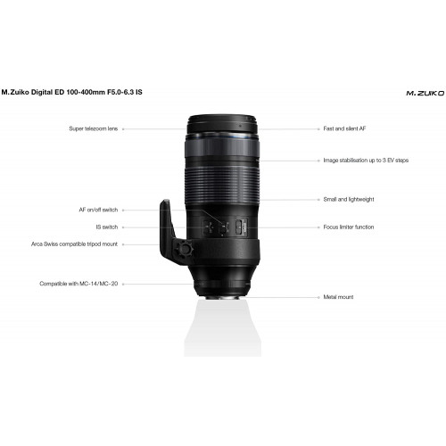 Teleobjetivo Zoom M.Zuiko Digital ED 100-400mm F5.0-6.3 IS, Compatible con Todas Las cámaras MFT (Modelos Olympus OM-D & Pen, Panasonic G-Series), Negro