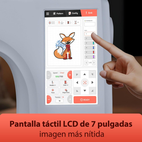 • 【Pantalla táctil a color de 7 pulgadas】La máquina de bordar POOLIN está equipada con una gran pantalla táctil LCD que puede arrastrar y editar patrones, como si estuvieras operando un teléfono móvil, haz lo que quieras.