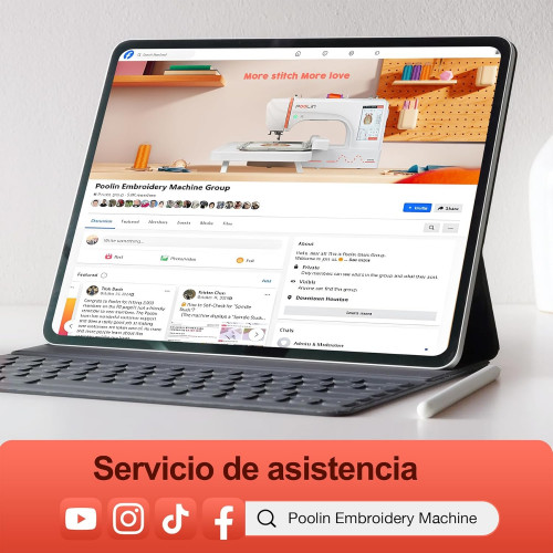 • Soporte de redes sociales】Busca "Poolin Embroidery&Sewing Machine" en Facebook para unirte a nosotros. Te brindaremos un servicio posventa personalizado gratuito por parte de ingenieros para que comiences mejor tu carrera de bordado.