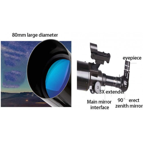 ROM Telescopio astronómico Profesional de Juguete para observación de Principiantes, Calibre de 80 mm, telescopio de refracción de Longitud Focal de 900 mm para niños princip