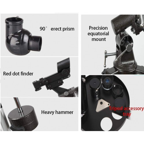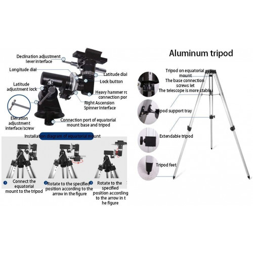 • Montaje ecuatorial de estructura de turbina de metal de alta precisión, la observación de la barra de ajuste de longitud y latitud es más conveniente y precisa de usar de un vistazo