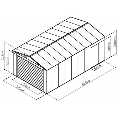 Su puerta es enrollable y tiene unas medidas de 250 (Ancho) x 190 (Alto) cm. Además, tiene una puerta lateral.