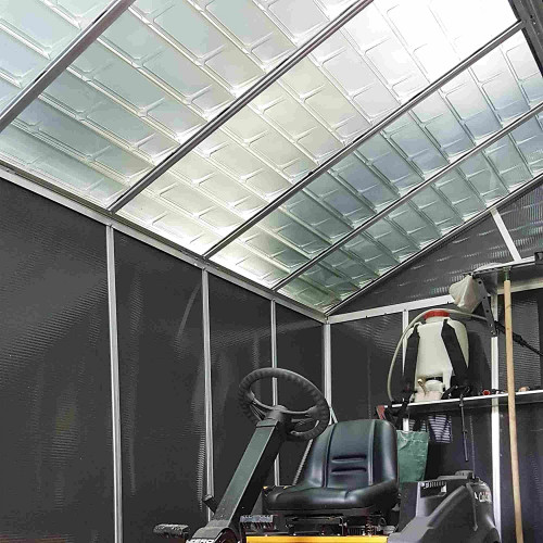 - Paneles de policarbonato reforzado 100 % anti-UV.