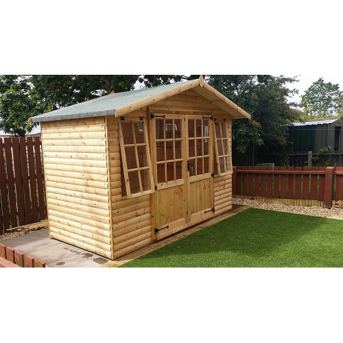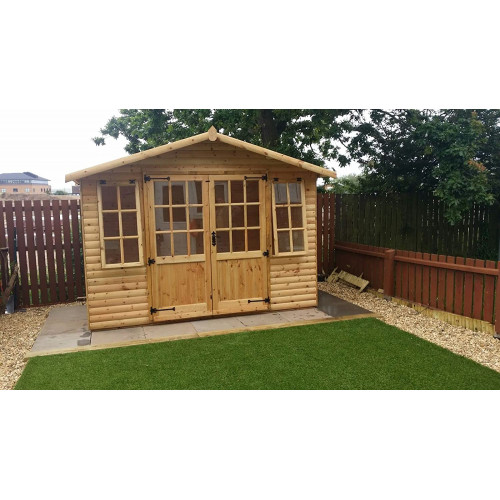 La cabaña de troncos es uno de nuestros más vendidos. Se ha utilizado en la sala de billar/piscina, oficina y uno más grande como anexo. Este es un edificio superior fabricado con marcos de 2 x 2 y ventanas de apertura con bisagras del mundo antiguo. 21 mm de largo para todos los marcos de 50 mm x 50 mm. La instalación está disponible si se pone en contacto con nosotros directamente.