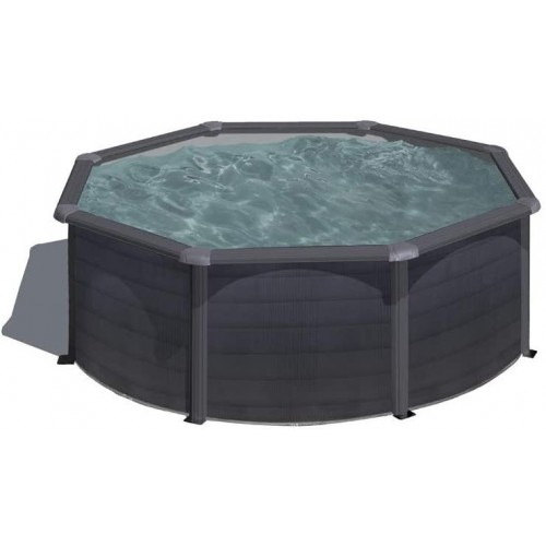¡Dale un toque único a tu jardín o patio! ¡Con la nueva y genial piscina redonda aspecto grafito Gre KIT350GF! Consigue esta fantástica piscina elevada con estructura de acero y aspecto grafito. Sus paredes han sido laminadas en frío, con tratamiento de galvanización, fosfatación, imprimación y lacado de alta calidad. Hasta 4 años de garantía por el fabricante para la estructura metálica. ¡Con perfilación vertical para mayor resistencia! Además, para retrasar el envejecimiento del liner, ha tenido un tratamiento anti-ultravioleta para retrasar el envejecimiento del mismo. Edad recomendada: + 6 años. Capacidad: 10.102 litros. Incluye: - Depuradora de arena de 3.000 l/h (arena no incluida). - Escalera de seguridad con 3 peldaños exteriores y 3 peldaños interiores - Liner PVC azul 40/100. - Protectores de inyección. - Perfilería de acero. Medidas aproximadas de la piscina: 350 cm de largo, 350 cm de ancho y 120 cm de alto. Espacio aproximado para el montaje: 400 cm de largo y 400 cm de ancho. Disfruta del resto de piscinas enterradas, piscinas elevadas, accesorios,