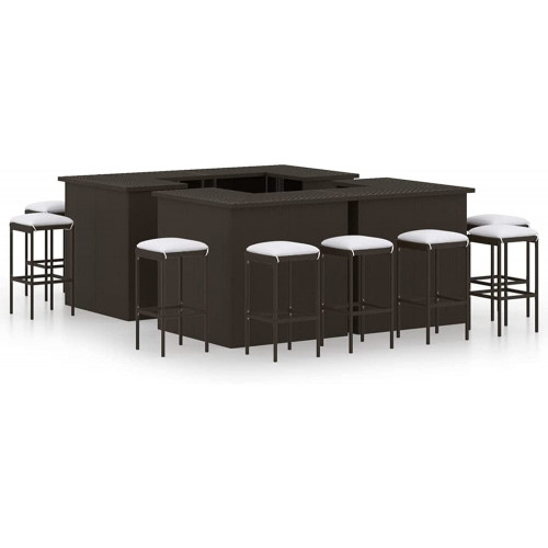 Festnjght Conjunto Muebles Muebles de Jardin Muebles Terraza Exterior Barra Bar Exterior de Ratán para Comedor Salón Jardín Terraza 4 Mesa y 12 Sillas para Exterior y Interior Marrón