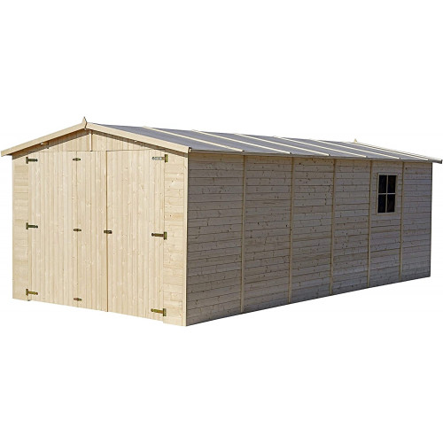 Garaje de Madera Natural - cobertizo en Pino / Abeto - A 295x10x5.10 cm / 50 m² - Construcción de Paneles - Taller de jardinería - Almacén para de automóviles, cobertizo para Herramientas-TIMBELA M102