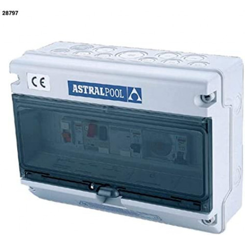 Completo y premontado, contiene en su interior un filtro Aster, una bomba Sena, una batería de válvulas, un cuadro eléctrico y un dosificador de cloro y bromo (no incluido).