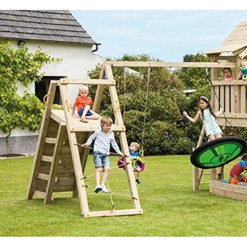 Rampa de escalada con cuerda de nylon para ayudarse a subir hasta la plataforma. Combina genial con este parque infantil que ya tiene una pared de escalada, escalera y el challenger. Otra manera diferente de subir hasta arriba.