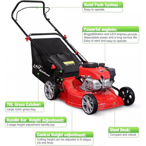 • [Flexible y ágil]: este cortacésped de césped con gasolina presenta una rueda trasera de 11 pulgadas para una fácil maniobrabilidad, una gran bolsa de 18.5 galones para recolección de recorte y un diseño de ahorro de mano de obra para ayudarlo a trabajar de manera más eficiente.