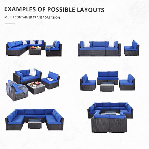 Ya sea para un sofá de gran tamaño y mesa de centro, un sofá con doble silla, una silla doble y 2 sillas laterales, caja de almacenamiento, mesa auxiliar o cualquiera de las otras muchas configuraciones posibles, el SUNVIVI OUTDOOR se adapta a todas sus necesidades cambiantes. El mimbre de resina para todo tipo de clima da el aspecto y el mimbre natural de PE con la durabilidad, la intemperie y la resina UV. Es una opción no tóxica y respetuosa con el medio ambiente. SUNVIVI Outdoor ofrece más opciones de color de este mueble de patio para su elección. Disponible en mimbre marrón clásico con cojines beige o elegante mimbre negro con azul / azul real, el juego de patio siempre proporciona la comodidad y estilo de felpa para fijar tu vida al aire libre. El mobiliario de patio ofrece algo más que un lugar para comer o relajarse en el exterior, también es una extensión de tu espacio de vida interior. Con nuestra selección de muebles de patio al aire libre, podemos ayudarle a crear una experiencia al aire libre que usted y su familia puedan disfrutar durante años.