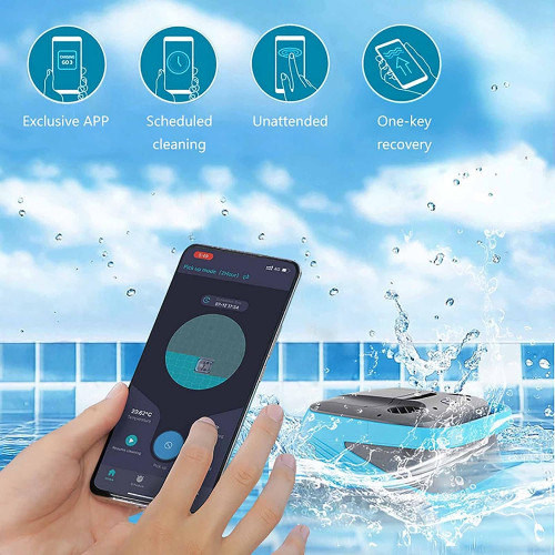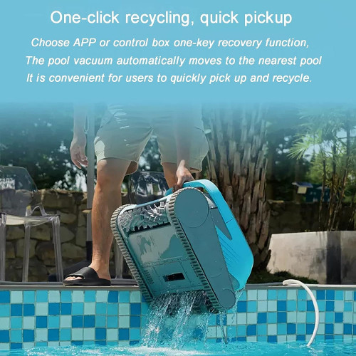 Recuperación de un solo tecla, recogida rápida, seleccione la aplicación o caja de control de la función de recuperación de un solo tecla, la aspiradora de la piscina se moverá automáticamente al grupo más cercano, lo cual es conveniente para que los usuarios recojan y reciclen rápidamente.