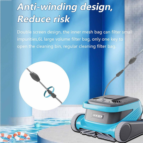 El diseño antiestimador del cable del robot de limpieza de la piscina puede moverse libremente, lo que reduce en gran medida el riesgo de enredo del cable.