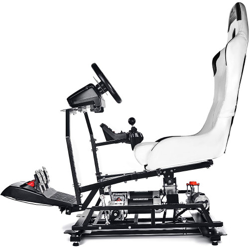 A diferencia de la competencia, no solo se mueve el asiento, sino toda la plataforma: incluido :volante, joystick, pedal, sillon viene completo como sale en la foto.
