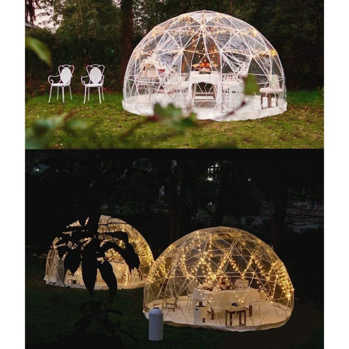 【Tienda de burbujas transparente】 Material transparente, que le permitirá disfrutar de una vista de 360 grados del exterior. El PVC permite un espacio exterior cálido y relajante para usted y su familia.