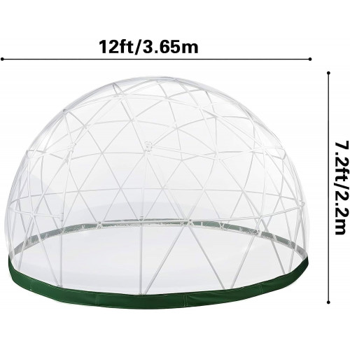 【Gran capacidad】 Esta carpa domo iglú para jardín tiene un diámetro de 3,6 m/12 pies. La altura máxima es de 2,2 m/7,2 pies. El área de la base es de 107 ft². Gran casa de burbujas que proporciona un refugio interior espacioso que se adapta cómodamente a 4-7 adultos, gran espacio interior para muebles de jardín.