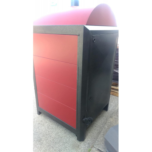 Descripción del producto Made in Italy Messina Sicilia Producto de fabricación y de calidad certificada italiana. Características: - Potencia: KW (38 kW agua + 10 KW aire); - Dimensiones L x P x H: mm. 100 x 1100 x 1900. Dimensiones del horno (largo x ancho x alto): mm. 800 x 880 x 450; Horno alcanza temperaturas superiores a 300 grados.................... 1050 MC - Peso: kg. 288; - Para necesidades de hasta metros cuadrados. 270; - Salida de humos mm. 140; - Eficiencia 77%;