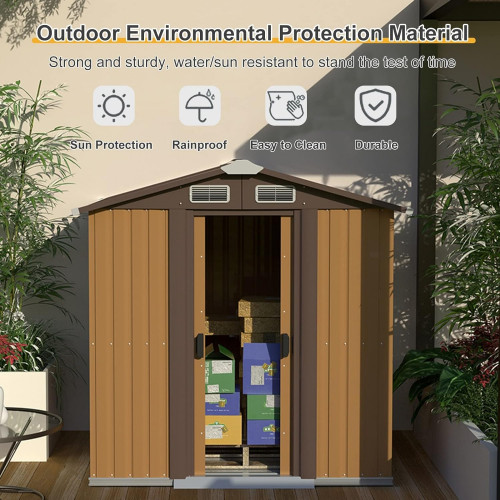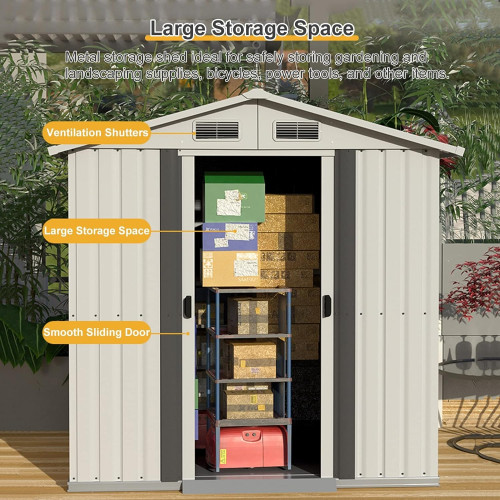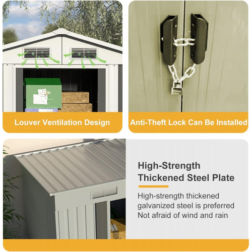 - 【Adáptese en todas las condiciones inclementes】Hecho de acero galvanizado para evitar la humedad y resistir el mal tiempo para un uso prolongado. El acero revestido es resistente a los rayos UV, lo que ayuda de manera efectiva a mantener su propiedad en buenas condiciones. Además, para propiciar la ventilación y el enfriamiento en la habitación, el almacenamiento del patio trasero proporciona un diseño de ventilación.