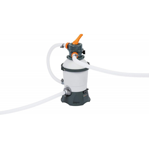 - Este modelo de piscina incluye depuradora de arena de 3.028 litros/hora y escalera