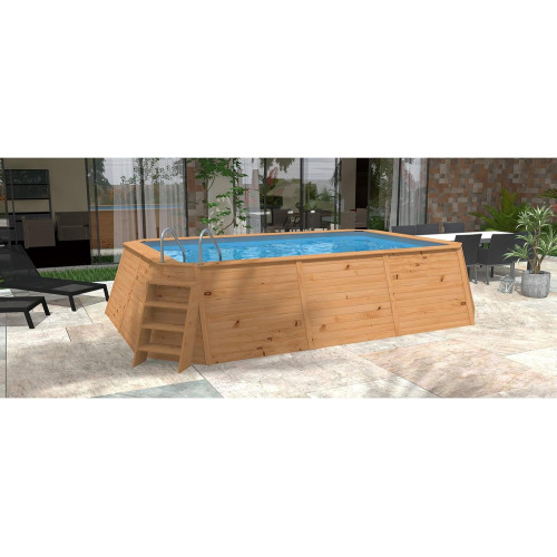 - La madera con la que se fabrica la piscina está tratada en Autoclave Clase III para su óptima conservación al aire libre y tintada en marrón para conseguir un acabado Premium