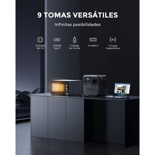 • [9 Salidas Versátiles] - 1800W de potencia de salida: incluye CA, USB tipo A, tipo C y cargador inalámbrico. Compatible con todos los enchufes de dispositivos. Para cargas resistivas puras, la salida de CA es de hasta 2700W.