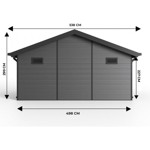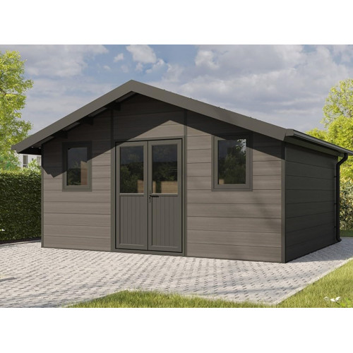 Caseta de jardín de Material Compuesto ISORA - 20m² - Gris - Grosor de Pared: 28 mm - Ampliación - Caseta de jardín - Local - Doble acristalamiento