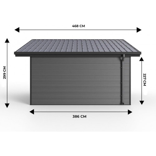 Está equipado con una puerta doble de 148x205 cm, que proporciona el espacio ideal para guardar de forma segura objetos voluminosos como bicicletas o muebles de jardín.