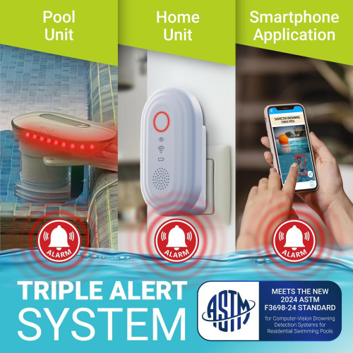 - Alarmas falsas bajas bajo el agua y por encima del agua: nuestra alarma de seguridad para piscina cuenta con tasas mínimas de falsas alarmas, asegurando la detección de ahogamientos mientras minimiza las alertas innecesarias.