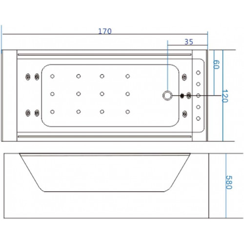 TECNICAS Dimensiones del baño: 170 X 120 X 58h cm Bomba de agua de 1.50
