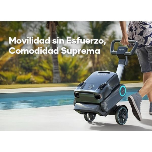 - Transporte Sencillo: Con el carrito de Aiper, el robot de piscina se transporta fácilmente. Su diseño ergonómico facilita el transporte y reduce el esfuerzo