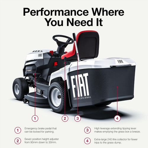 Fiat Professional Veloce FV98HP - Cortacésped hidrostático de gasolina para tractor de jardín (98 cm)