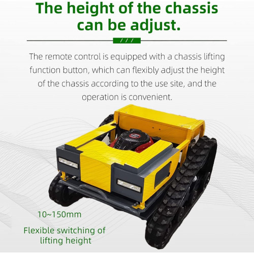 • Chasis ajustable: la altura del chasis es ajustable, lo que permite la idoneidad en más terrenos. Ofrece una fuerte aleatoriedad en el corte y la libertad de ajustar la altura del césped, proporcionando flexibilidad en el paisajismo.