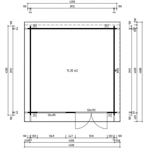 - Dimensión exterior (ancho x fondo): 400 x 400 cm