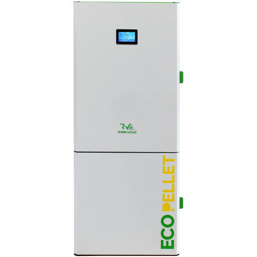 El Robin Wood EcoPellet es una caldera de pellet de última generación con limpieza automática de quemadores. Un bajo consumo y un alto grado de eficiencia caracterizan a esta caldera. Con una eficiencia de > 93 %, alcanza la clase de eficiencia energética A++. Su diseño compacto permite la instalación incluso en espacios pequeños. El Robin Wood EcoPellet está diseñado para proporcionar calidez a toda la casa. Equipado con una moderna regulación de fuego, esta caldera te garantiza suficiente comodidad durante cualquier época del año. Equipado con un conector para un módulo WiFi, conectado a una aplicación adecuada, puedes acceder a la caldera en cualquier momento a través de tu smartphone y adaptarlo a tus necesidades. Además, la caldera de pellets se puede combinar con otros productores de calor. Además, dispone de una limpieza automática del quemador. ¿Quieres calentar tu casa además con energía solar o con una bomba de calor? Con un sistema multibúfer puede aprovechar todas las fuentes de energía imaginables. Con un Robin Wood EcoPellet permanecerá flexible y puedes equipar tu sistema de calefacción según tus ideas. ✓ BAFA transportable en Alemania. Véase bafa.de æ le ayudaremos a llenar la solicitud BAFA. Detalles técnicos: Potencia: 30 kW. Altura: 1650 mm. Ancho: 626 mm. Profundidad: 788 mm. Capacidad del depósito de pelleta: 105 kg. Conector de aire fresco: 60 mm de diámetro. Tubo de humo. Diámetro: 80 mm. Peso: 245 kg. Tipo de combustible: Ø6-Ø8 mm. Pellet de madera. Hoguera: 12 Pa. Consumo de energía: 60/310 W. Conexión eléctrica: 230/50 V/Hz. Contenido del revestimiento de agua: 65 litros. Presión de funcionamiento: 0,5-2,0 bar. Temperatura ambiente posible: En funcionamiento 5 – 40 °C, humedad a 30 °C. Temperatura ambiente: 85 %. Eficiencia > 93 %. Emisiones de CO: <300 mg/m3. Temperatura del humo: 147 °C. Máx. Temperatura del agua: 90 °C. Flujo de gas de escape en: sí. Potencia nominal: 17,80 g/s. Potencia reducida: 6,01 g/s. Temperatura del humo: 147 °C.