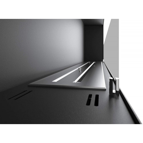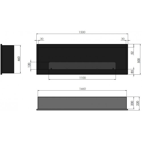 • Dimensiones totales de la biochimenea: 1500 x 500 x 220 mm de profundidad. Dimensiones de la parte empotrada: 1460 x 460 x 200 mm. Quemador único de 100 cm de largo con una capacidad de 3 litros. Material: acero inoxidable de 1,5 mm con recubrimiento en polvo con pintura resistente al calor.
