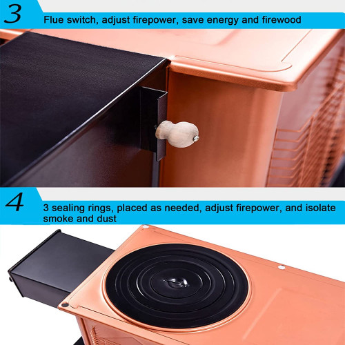 • ★ Tubo del horno: la ventilación secundaria asegura una combustión eficiente y limpia y mantiene el calor en el horno durante más tiempo. 2 tubos de humo, la altura se puede ajustar para adaptarse a diferentes espacios, como carpas o casas pequeñas.