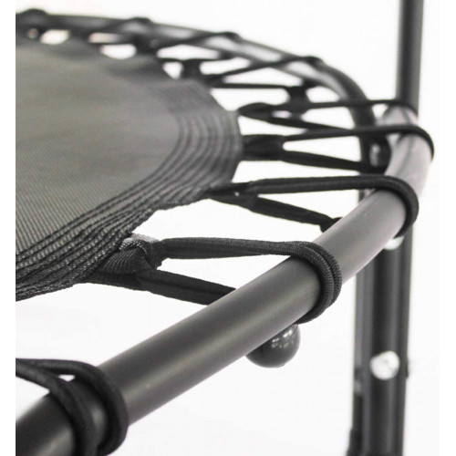 - Buena elasticidad: este trampolín está conectado con 30 cuerdas elásticas de alta resistencia, lo que minimiza el ruido, la almohadilla de salto resistente al desgaste y a los rayos UV (hecha de PP) puede soportar alta presión.