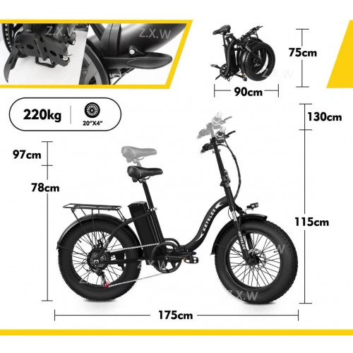 • 3 modos de trabajo: las bicicletas eléctricas tienen un modo puramente eléctrico, un modo de asistencia y un modo personal. Puede elegir el modo eléctrico para relajarse o utilizarlo para hacer deporte. Las llantas de aleación de aluminio de 20 pulgadas y los neumáticos anchos de 4 pulgadas son adecuados para entornos urbanos y todoterreno con buenas condiciones de la carretera.