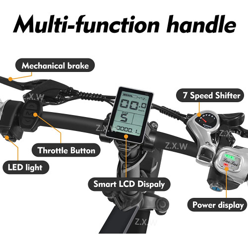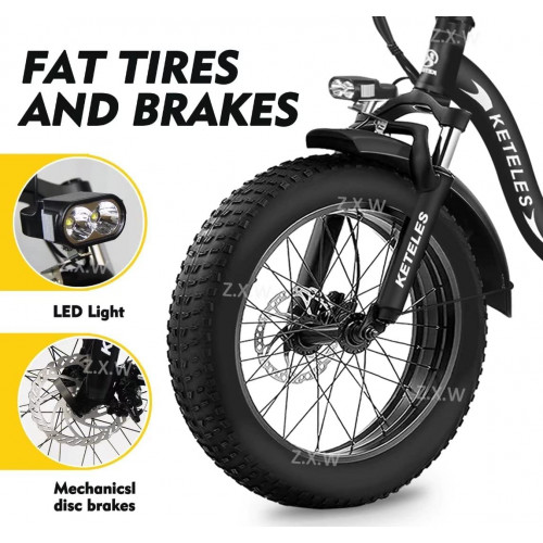 • Motor sin escobillas de alta velocidad: bicicleta de neumáticos gruesos con motor de engranajes sin escobillas de alta velocidad, alta velocidad y bajo nivel de ruido. El par de 75 Nm le ayuda a subir fácilmente pendientes de 30 a 35 grados.