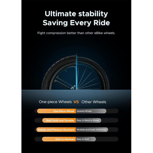 • 【Neumáticos de alta calidad estilo motocicleta】 La firma de la X26 radica en la combinación de ruedas unificadas de una sola pieza y neumáticos de estilo motocicleta de alta calidad, con dimensiones de 26x4,0 pulgadas. Esta síntesis proporciona una estabilidad excepcional, una tracción superior y una mayor resistencia, reforzada por el chasis totalmente de aluminio. Estos neumáticos sortean hábilmente grava, baches y terrenos rocosos a velocidades notables.