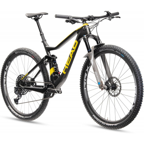 - Diversión de conducción: la bicicleta de montaña Fully es una gran bicicleta para terrenos difíciles y también ideal para el viaje diario a la escuela o al trabajo. Diseño moderno: con el mismo diseño deportivo y moderno, cada bicicleta HEAD es un punto de atracción absoluta y brilla por lo tanto no solo por sus valores interiores. Excelente equipamiento: la bicicleta de montaña Adapt Edge Team tiene un cuadro de fibra de carbono completo y está equipada, entre otras cosas, con una suspensión completa Suntour Dual Suspension, alta calidad SRAM de 12 velocidades y tija de sillín ajustable en altura. Seguridad: los frenos de disco de SRAM le dan al Fully una seguridad fiable y ayudan en viajes de alta velocidad. Montaje rápido: la bicicleta de 29 pulgadas está premontada al 95% y lista para conducir en pocos pasos. Los pedales no están incluidos y pueden ser elegidos por el propio conductor.