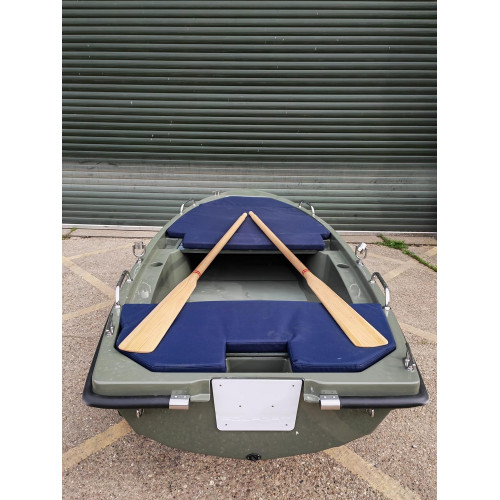 Boat POLPORT 340 - Barco de remo de doble capa para pesca recreativa, modelo 2024, color caqui, casco y cubierta Barco en color caqui, remos de madera de primera calidad y cerraduras de remo. Extras como rieles de acero inoxidable, tacos, techo de tienda de campaña, rodillo de anclaje, cojines no están incluidos en el precio. Este barco de pesca está perfectamente diseñado por los pescadores profesionales, no sumergible, muy estable. La cámara de flotabilidad garantiza la seguridad, 2 compartimentos y bancos ajustables, comodidad y comodidad. Está hecho de fibra de vidrio. El grosor de una capa es de aprox. 1 cm. Entre capas es solo aire. BARCO DE CATEGORÍA D con certificado CE y UE LA MEJOR ELECCIÓN ENTRE LOS BARCOS DE ALTA CALIDAD ESPECIFICACIÓN: - Ancho - 1380 mm/1380 mm/138 cm - Longitud - 3370 mm/337 cm - Altura del lado en lugar de remos - 1,64 pies/500 mm/500 mm/500 mm/500 mm/500 mm/500 mm/500 mm/500 mm/500 mm/500 mm/5cm - altura en El soporte del motor de popa es de 400 mm/40 cm - longitud de la cavidad 3,77 pies/1150 mm/115 cm - peso 70-80 kg - número de personas - 3 personas - desplazamiento de 300 kg - motor recomendado - eléctrico o combustión a 3.5 HP EQUIPO BÁSICO: - Revestimiento antideslizante moderno - Fuerza. Enganchar el travesaño debajo del motor tanto desde el exterior como desde el interior - En la entrada trasera del cable del casquillo a la batería - Enchufe para drenar el agua del casco - Amarre de oreja en la proa - Banco extraíble - OARLOCKS Y OARS DE ACERO INOXIDABLE LIBRE DE ALTA CLASE (AHORRA £80) EQUIPO EXTRA (con pago adicional): - Rieles de acero inoxidable - Tacos de acero inoxidable acero - Arco de rodillo de anclaje o popa - Parachoques de goma - Una medida de los peces dentro de la cabina - Cubierta - Tapicería - Colchones - Cojines - Carro - Remolque