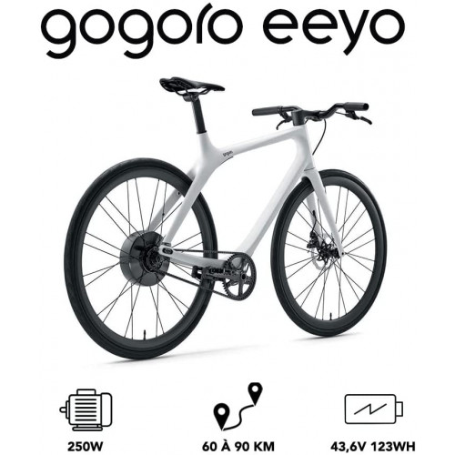 Fruto de la investigación y el desarrollo de la marca Taiwanese Gogoro, líder mundial del scooter eléctrico, el Eeyo 1S es un condensado de innovaciones inteligentes y prácticas. Así, el motor, el controlador y las baterías están totalmente integrados en el buje de la rueda trasera, es la Smartwheel. El maravilloso diseño de Eeyo 1S se quiere depurar, aerodinámico y totalmente pensado para el piloto. La autonomía del Eeyo 1S Eyo es de 99 0 km en modo Eco y su batería se carga completamente en 2,5 horas. Totalmente diseñado y fabricado por las fábricas Gogoro de Taiwán, el Eeyo 1s es una maravilla que encantará a los amantes de la gama alta, una combinación de materiales prestigiosos y un rendimiento inigualable. El Eeyo 1S está disponible en 5 tamaños diferentes en función del tamaño del piloto. El sillín es ajustable en altura +/-1 cm. Dispone de una aplicación móvil, se beneficia de un sistema de bloqueo/desbloqueo automático cuando el piloto se aleja o se acerca a la bicicleta.