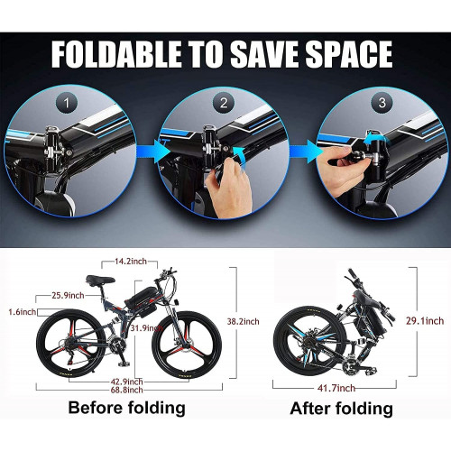 SFSGH Bicicleta eléctrica para Hombres Adultos Mujeres, Bicicleta Plegable 350W 36V 10A 18650 Batería de Iones de Litio Plegable Bicicleta eléctrica de montaña de 26"con Sistema de tran