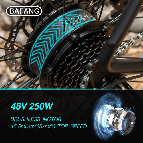 • ✅【Potente Motor de BAFANG】 ????Nuestra bicicleta electrica adultos está equipada con el motor sin escobillas de 250W de BAFANG, que está montado en la parte trasera. Ofrece un excelente rendimiento con una velocidad máxima de 25-30km/h. La bicicleta MTB ESKUTE facilita el pedaleo y es ideal para las colinas empinadas y el ciclismo de larga distancia, para que puedas relajarte y disfrutar de los paisajes hermosos a lo largo del camino