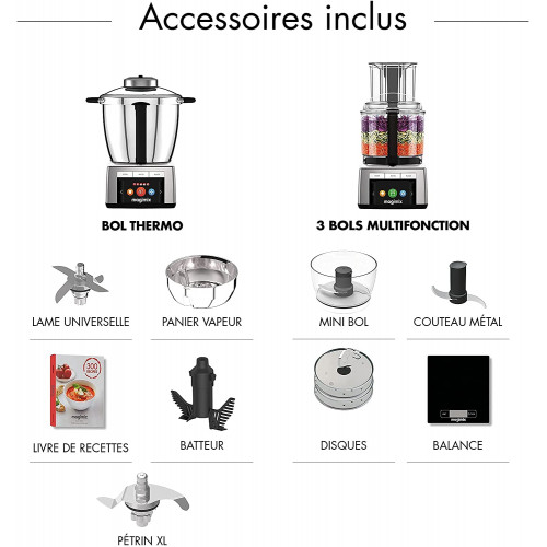 Magimix - Cook Expert Premium XL 18909 Robot de cocina multifunción, motor profesional 1800 W, Platino, fabricado en Francia
