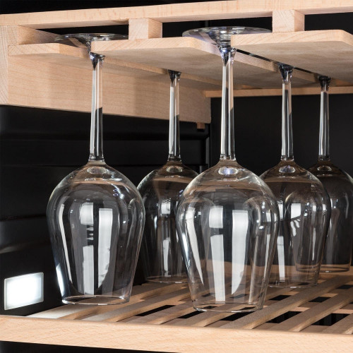 • 24 copas frías: Estante para copas de vino de madera de haya para refrigeración directa