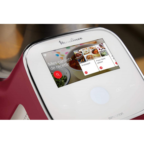 - Robot conectado por WiFi que permite crear tus recetarios y puedes acceder a ellos a través de la pantalla táctil de 4.3 pulgadas de tu i-Companion Touch XL; mediante la App Companion de Moulinex puedes organizar tus menús fácilmente