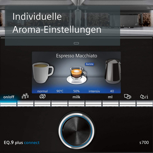 Siemens TI9578X1DE EQ.9 plus connect s700 - Cafetera automática personalizada, 2 recipientes para granos, molinillo extrasilencioso, 1500 W, acero inoxidable