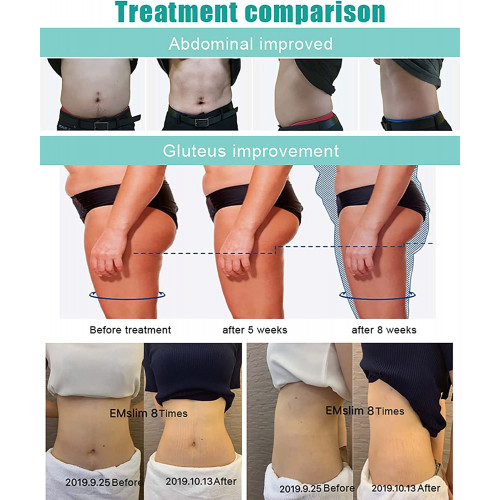 • Efectos en la grasa: varios estudios recientes que utilizan Evaluaciones de CT, MRI y Ultrasonido han reportado aproximadamente el 19% de reducción en el Ayer de grasa subcutánea en pacientes tratados por un dispositivo a base de HI-EMT en su abdomen